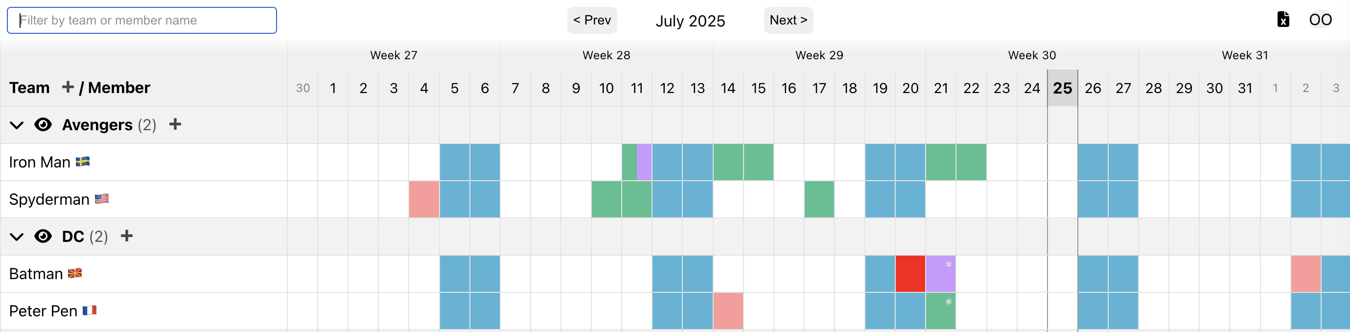 - Team and member management: Easily manage teams and team members’ vacation schedules in one place.